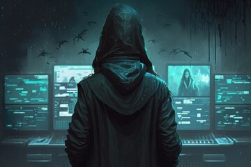 hacker, who uses their skills to break into secure systems and uncover hidden secrets, all while staying one step ahead of the authorities digital art poster AI generation.