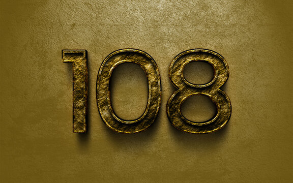 Stunning golden number 108 floats triumphantly, symbolizing achievement, anniversaries, or milestones with opulent shine and professional appeal.
