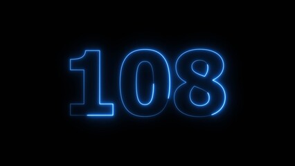 Counting neon 108 number illustration. Neon text number on black background.  Neon count number.