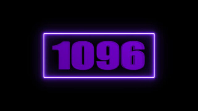 Purple 1096 neon number in a glowing rectangular frame against a black background, ideal for digital projects and presentations