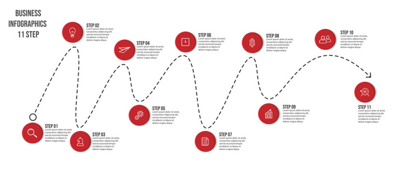 Vector Infographic simple design with 11 options or steps. thin line, Can be used for presentation banners, workflow layouts, flow charts, infographics, your business presentations