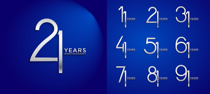 set of anniversary logo silver color number in circle and black text on white background for celebration