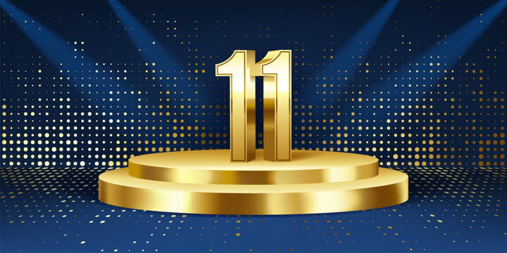 11th birthday golden years. Poster template for party and event celebrating birthday. black and gold vector