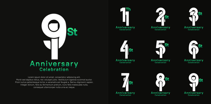 anniversary logotype vector design with white and green color for celebration moment