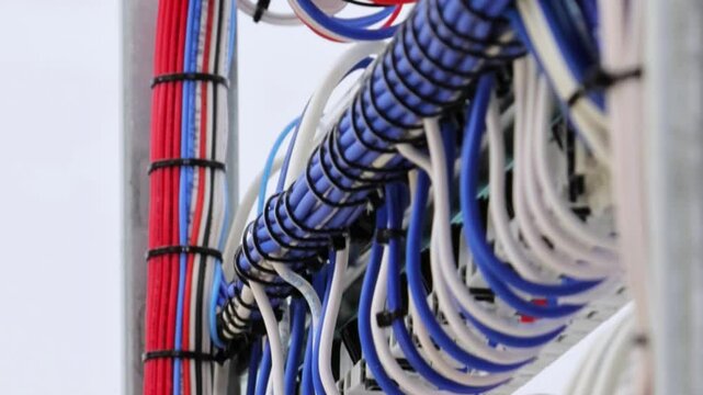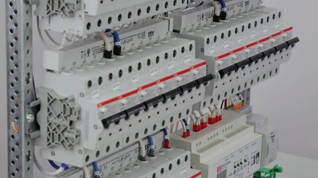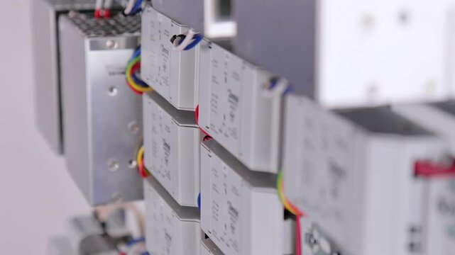 An electric switchboard for the organization of electricity supply to the apartment. Close-up. Soft focus.