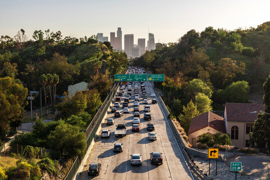 Rush Hour on the 110 Freeway in Downtown Los Angeles at Sunset