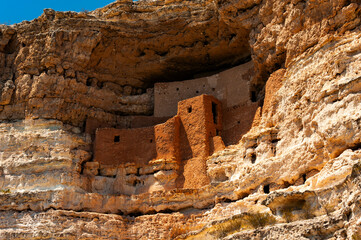 Montezuma Castle in Arizona. Well-preserved dwellings located in Camp Verde, Arizona, which were built and used by the Sinagua people, a pre-Columbian culture between approximately AD 1100 and 1425.