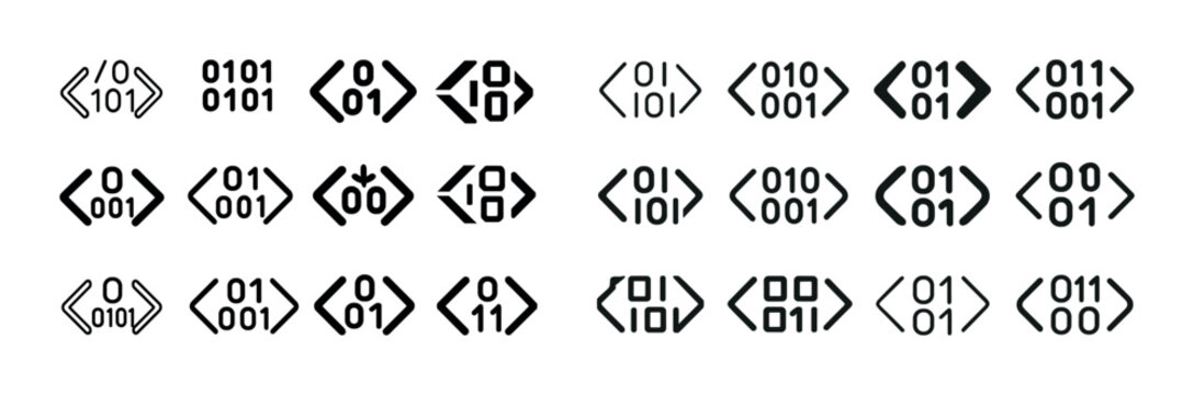 Binary code symbols collection with brackets and arrows