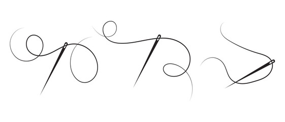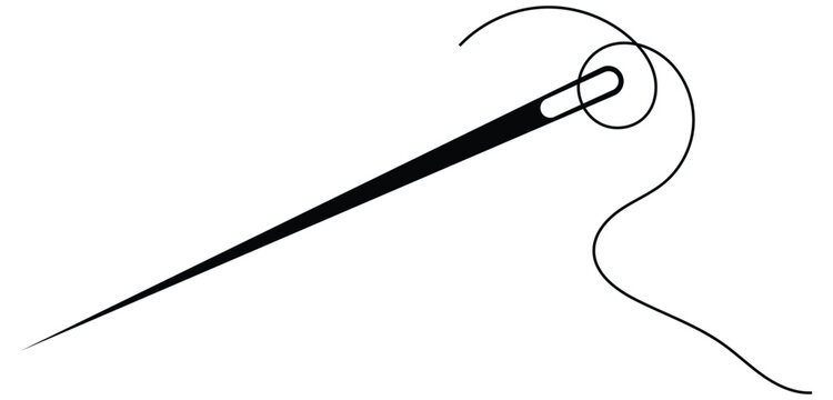 Sewing needle with a long  thread.  needle and thread Vector icon illustration eps 10.