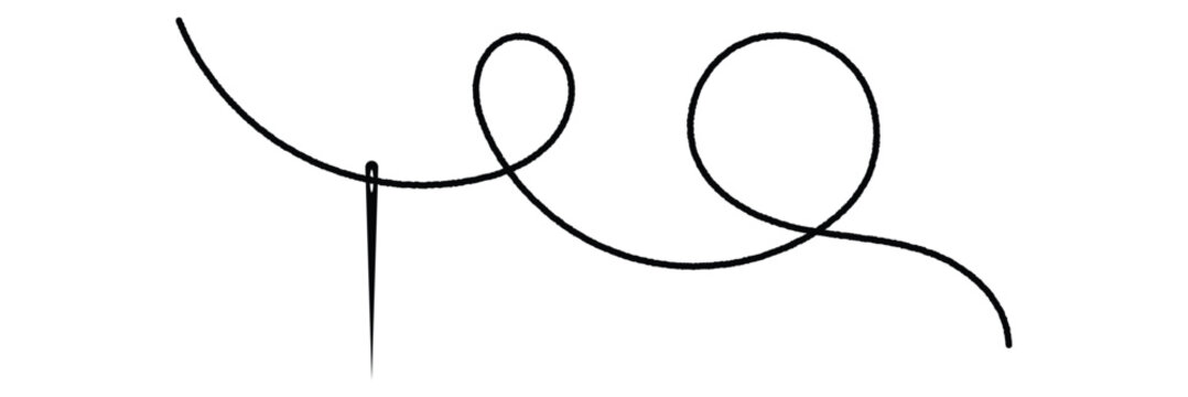 Continuous linear needlepoint pattern. Single line tailor's needle mark. Tailor's sign template. Vector editable linear illustration.