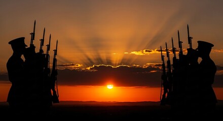 Veterans Day Sunset Silhouette Honoring American Heroes & Military Service November 11th