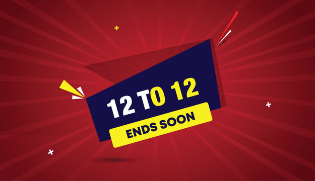 12 to 12 ends soon web banner vector art template design badge icon label deep blue yellow shapes white bold text dark red light sun shine abstract business background modern creative sale offer layou