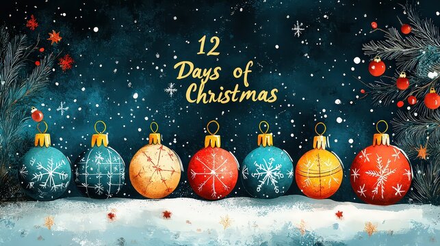The Twelve Days of Christmas. Vector illustration. Holiday poster.