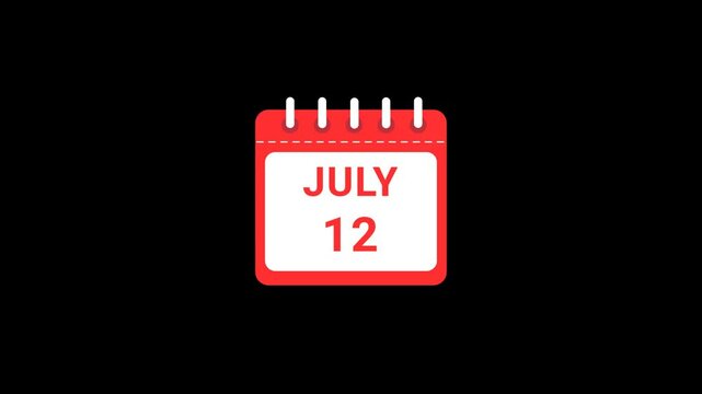 12 July Calendar icon vector, 12 dates of July month calendar icon, dates of July 12 icon calendar, vector calendar icon.