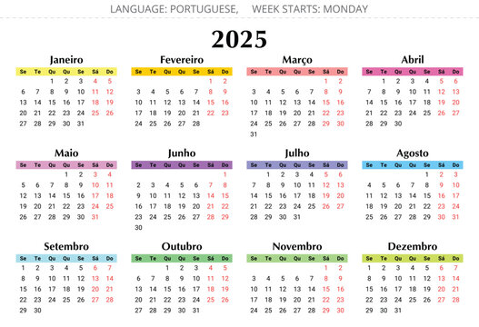 Portuguese calendar 2025 - Colorfull Portugal design illustration 12 months