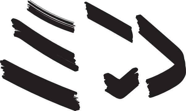 Vector set of twelve isolated black grunge brush strokes and hand-drawn marker lines for creative design elements. 12