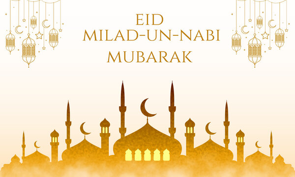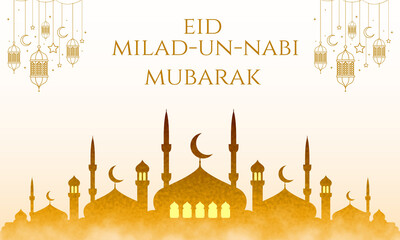 Print, Happy Eid Milad Un Nabi. Masjid vector of celebrating 12 rabi ul awal. Birth of Hazrat Muhammad Mustafa PBUH, Happy Eid Milad Un Nabi. Masjid vector of celebrating 12 rabi ul awal.