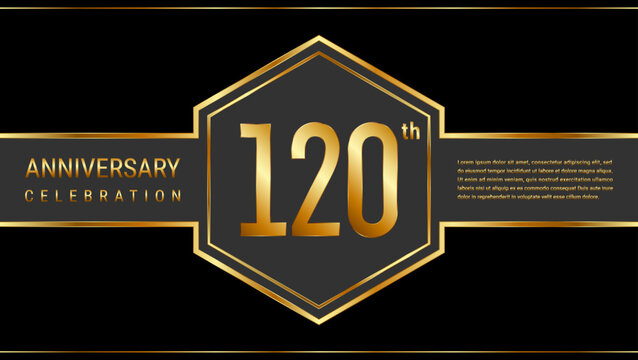 120 Years anniversary logo golden colored isolated on black background. Vector for special date and birthday.