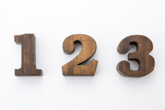 Wooden alphabet number blocks 123 on blue background