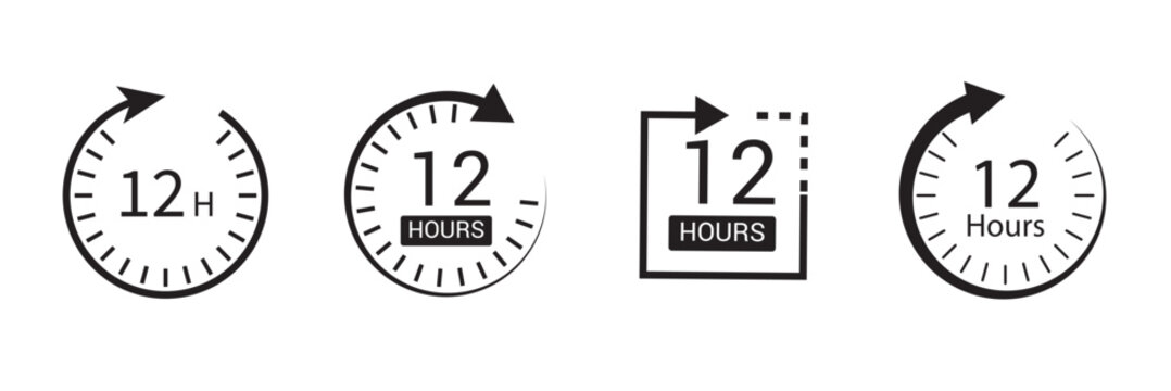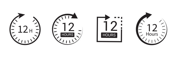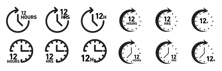 12 hours service vector symbol. 12h service duration sign. 12 h discount offer icon set. fast 12hr support sign collection.