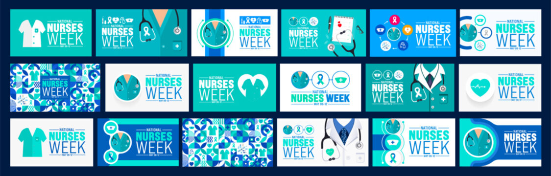 6th to 12th May is National nurses week background template mega bundle. nurse dress, medical instrument, medicine, Medical and health care concept. Celebrated annually in United States.