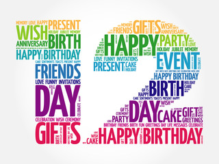 Happy 12th birthday party celebration. Modern marble composition 3D Render