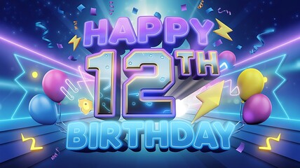 Golden 12th Birthday Celebration with Decorative Numbers on Party Background - 3D Rendering