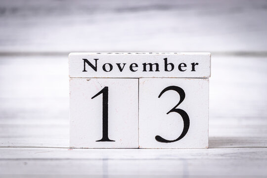 November 13 date written in French on the flip calendar page, 3d rendering