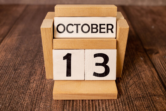 october 13th. Day 13 of month, handmade wood calendar  on modern color background. autumn month, day of the year concept