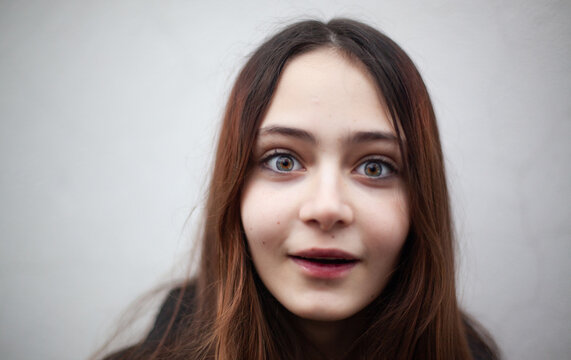 Portrait of 13 - 14 year old teenager girl posing outdoors, wearing headphones
