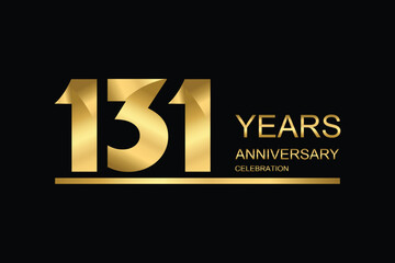 131 year anniversary vector banner template. gold icon isolated on black background.
