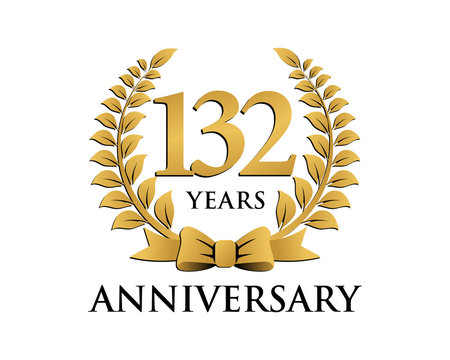132 year anniversary vector banner template. gold icon isolated on black background.