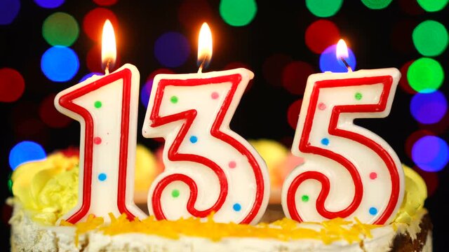 Number 135 Happy Birthday Cake With Burning Candles Topper.