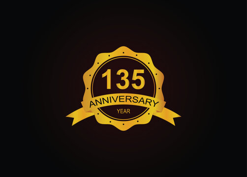 135th Anniversary celebration. Anniversary logo design with golden color for anniversary celebration event. Logo Vector Template Illustration
