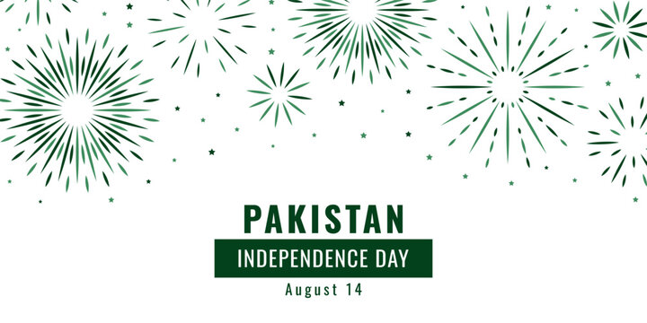 Pakistan Independence Day banner with firework. 14 August typography. Celebration background flags color with text. Vector illustration flat style for poster cover web card.