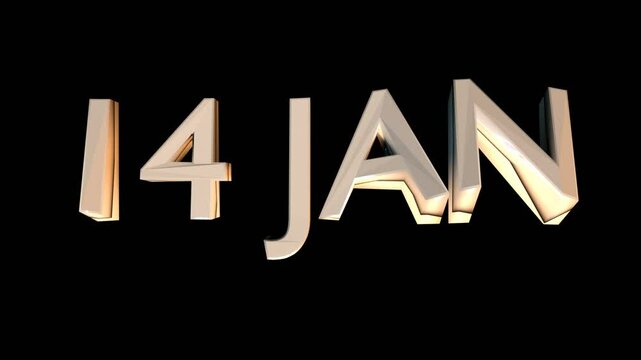 14 January date Calendar Page with Clock countdown animation on black Background. Digital calendar month and date concept design.
