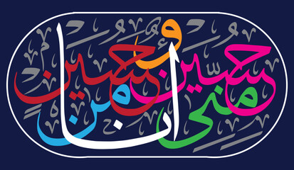 husayn miniy wa'ana min husayn, hadyth in arabic callgraphy khattati, vector ayat quranic verses, islamic arabic  multicolor on blue background wallpaper