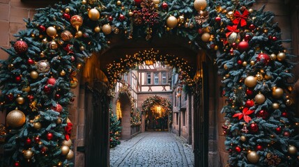 Christmas holiday decor in Strasbourg France. blished in the 1400s in the Alsace Region. Europe.
