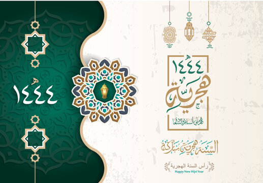 islamic new year Happy new Hijri Islamic year 1444 in Arabic islamic calligraphy translate ( happy new Hijra year 1444)