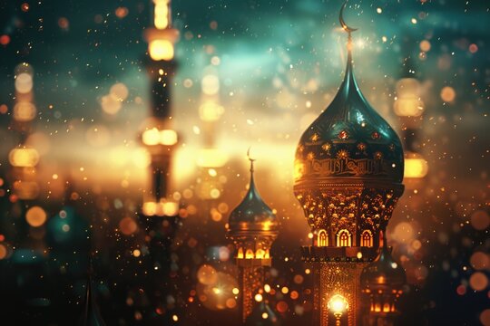 Ornate golden lanterns and islamic new year 1444 decorations create a festive scene
