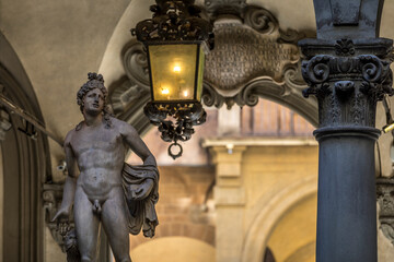 Florence, Italy - July 2023, 15: The courtyard of the Palazzo Medici Riccardi, designed by Michelozzo di Bartolomeo and built between 1444 and 1484