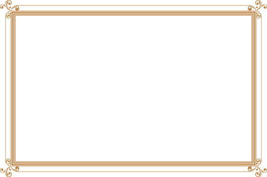 Elements of ornate vintage frames. Border gold on white classic swirls, floral motifs. Design print for greeting cards, wedding invitations, restaurant menu, royal certificates. Set 1444