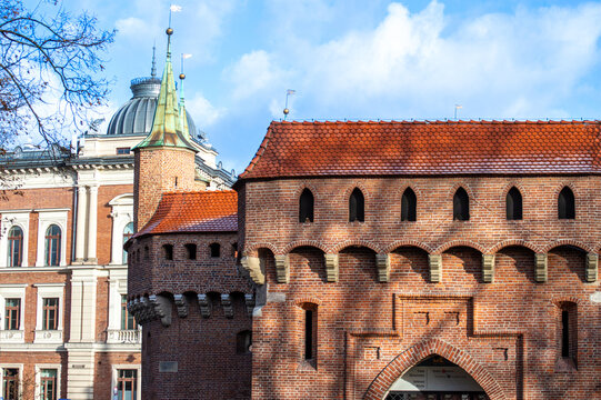 Barbican is defense gateway from 1490s in Krakow, Poland