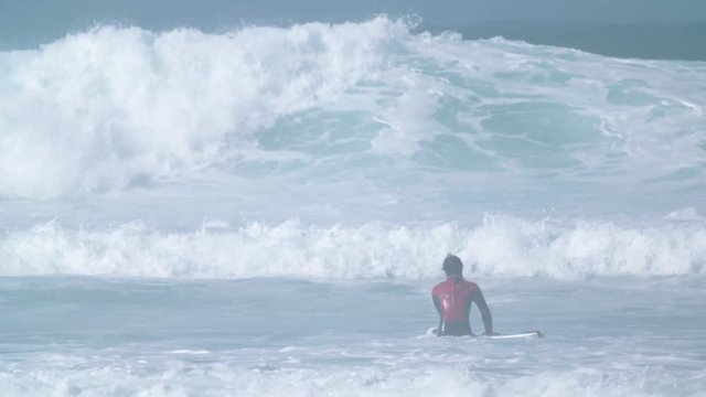 Estoril, Portugal - July 15, 2016: Surfers riding waves on July 15, 2016 in Estoril, Portugal. Powerful nature, active lifestyle and people