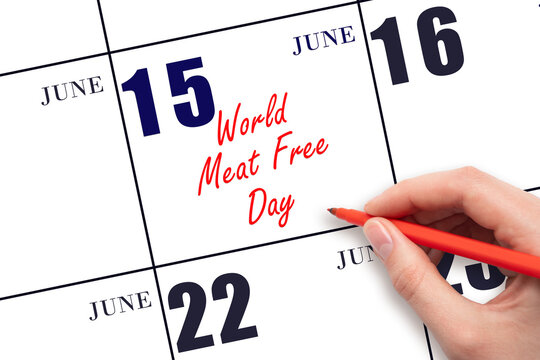 June 15. Hand writing text World Meat Free Day on calendar date. Save the date.