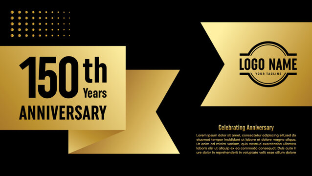 Golden Creative number 150 logo with leading lines and road concept design. Number with geometric design.