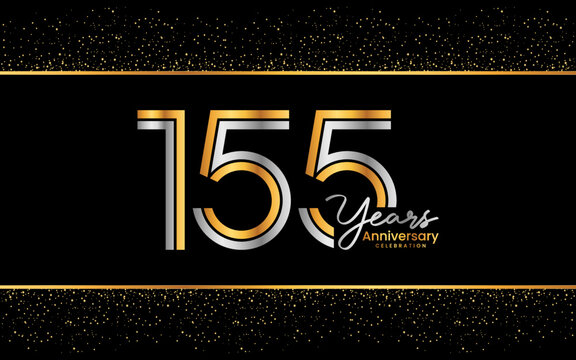 155th Anniversary Logotype. Golden Anniversary logo design in golden color for celebration event, invitation, greeting card, flyer, banner, poster, double line logo, vector illustration