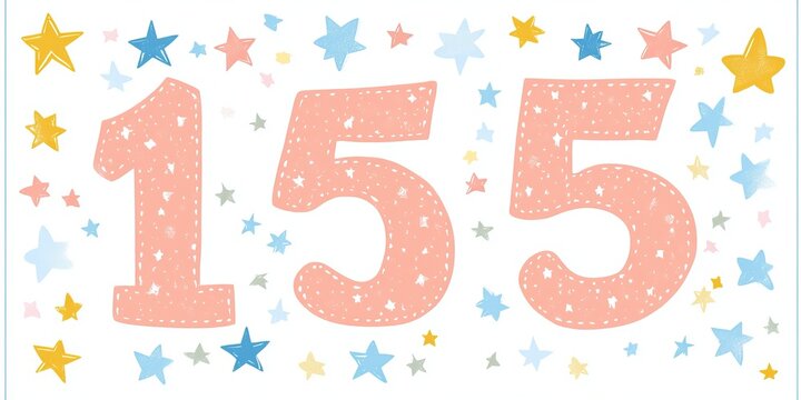 Festive Birthday Number Cheerful Celebration with Pastel Hues and Cheerful. One hundred fifty-five