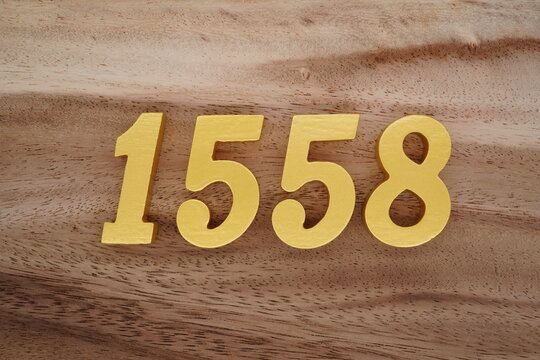 Golden Arabic numerals on a real brown and white wooden floor number 1558