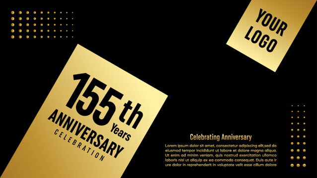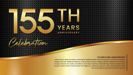 155th anniversary template design in gold color isolated on a black and gold texture background, vector template
